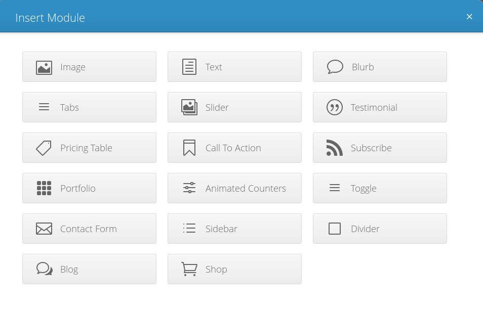 Depending the type of content you want to include, you pick a specific module. You have 17 options: