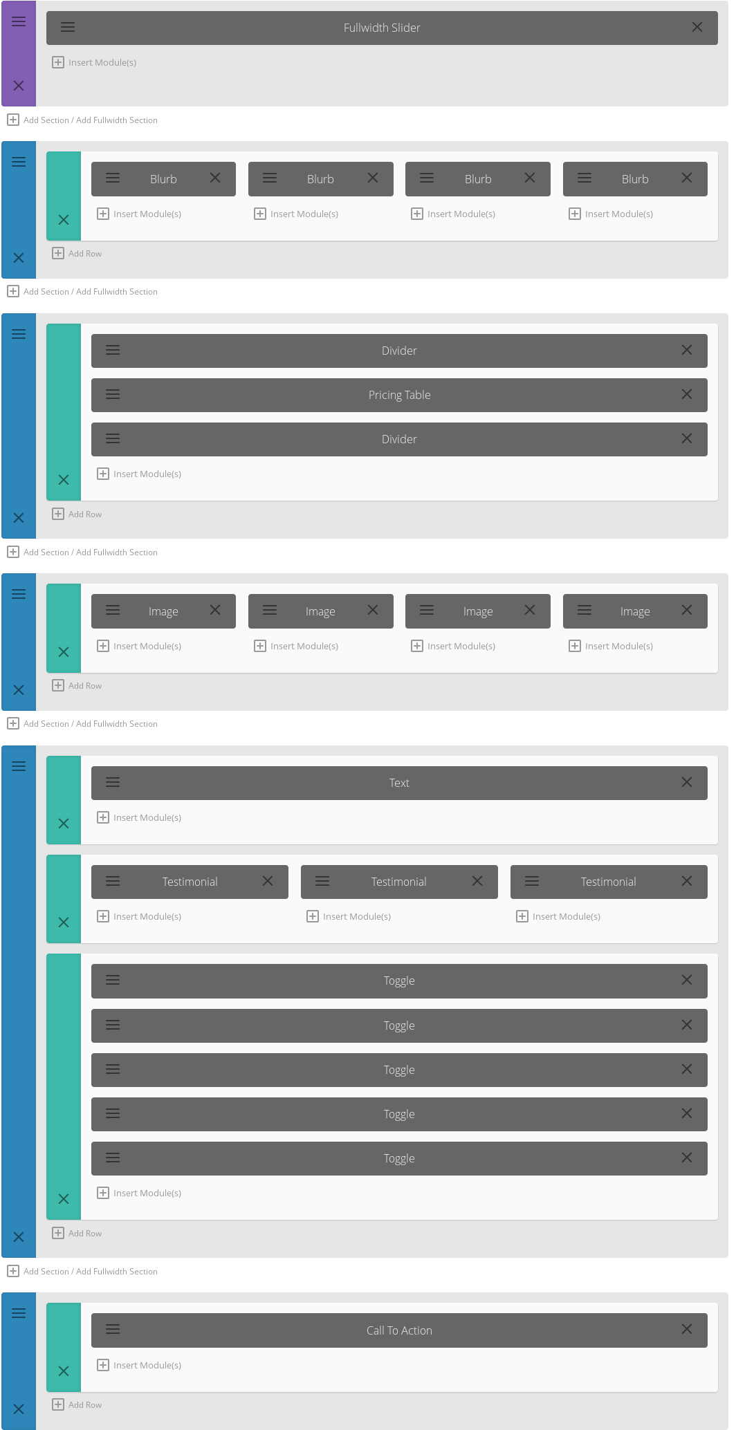 Basically, you can create a web page with only one section. However, by putting – let us – say a slider, blog posts, and your projects in different sections, you get the opportunity to style these sections differently. For example, by assigning each section a different background color or another background image.