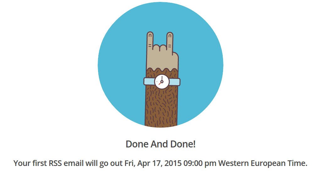 The Done And Done page confirms that you have successfully created a RSS campaign. It also informs you when the next dispatch has been scheduled.