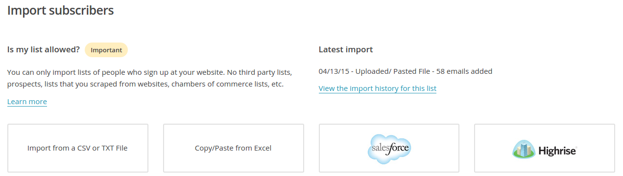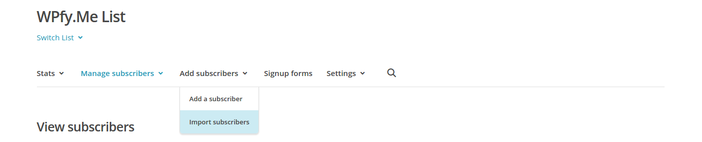 Select Import from a CSV or TXT file on the Import subscribers page.