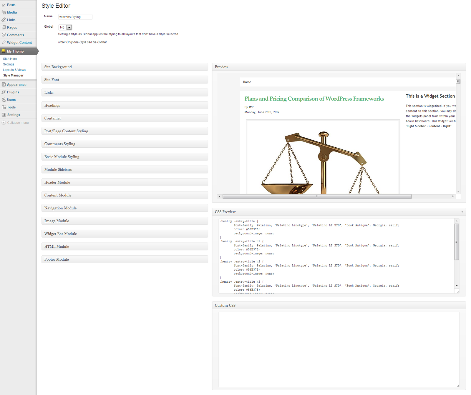 - a preview box instantly showing you the results of the styling – you can even browse the site within the Preview box