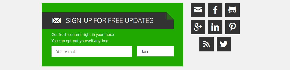 Yes, the box at the bottom is quite big. That is why, in another attempt, I shrunk the subscription box to two third, and put the social icons at the right hand side of it.