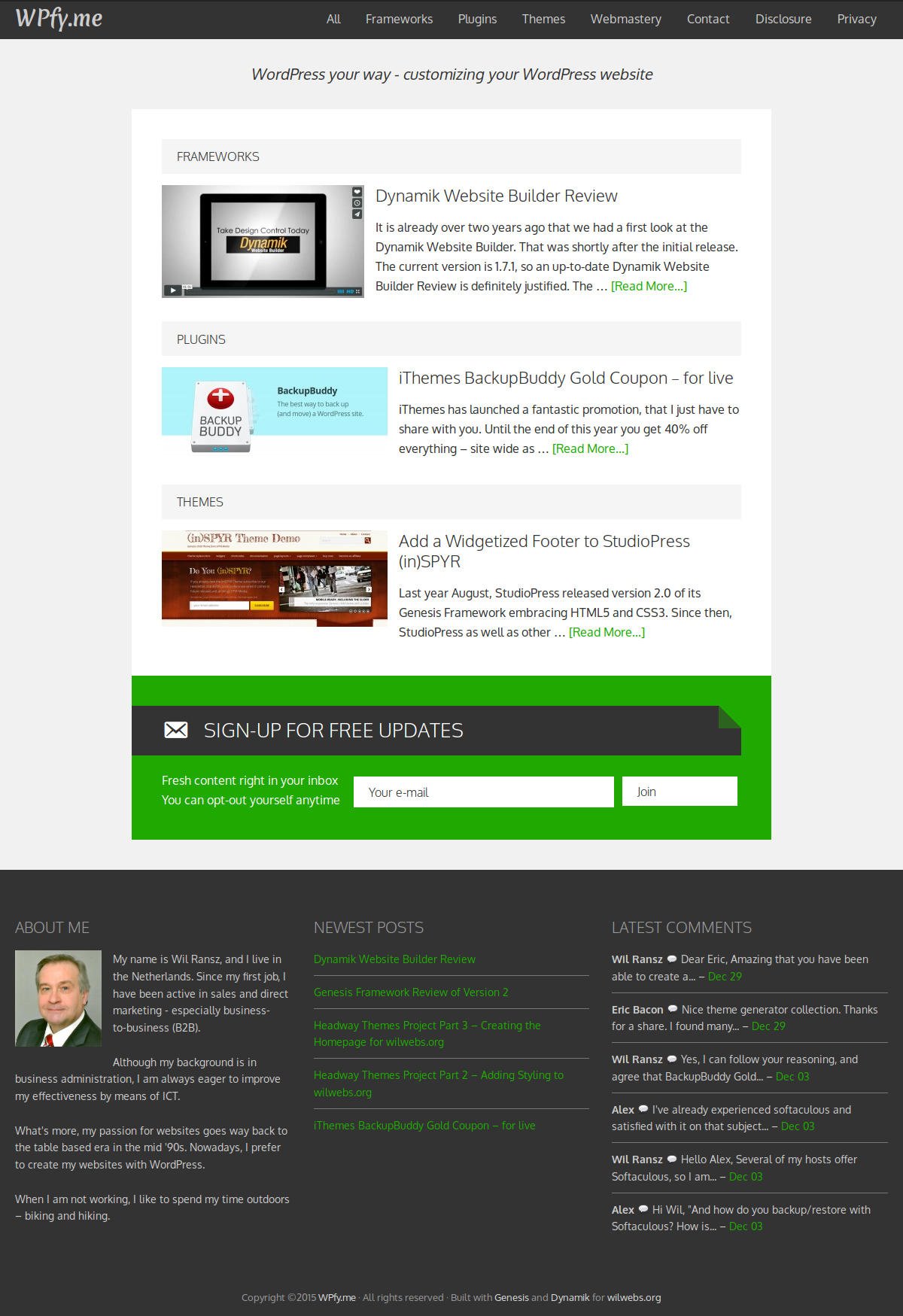 Wilwebs.com focuses on three categories of WordPress products: Frameworks, Plugins, and Themes, or rather child themes and skins to the frameworks covered. One of my requirements is that the homepage should convey the focus on these categories.