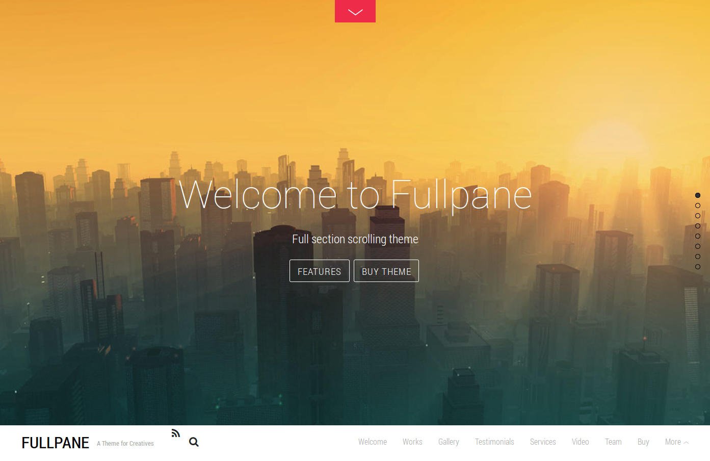 Themify Fullpane is a responsive theme for online portfolios, featuring fly-in animation, a drag-and-drop Page Builder and custom post types for – among other – galleries and portfolios.