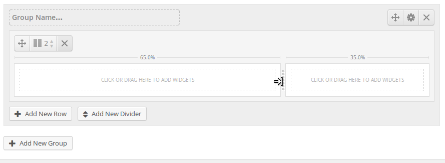 Hit the [Add New Group] button and increase the Amount of Columns to three. Now we have a new row with three columns.