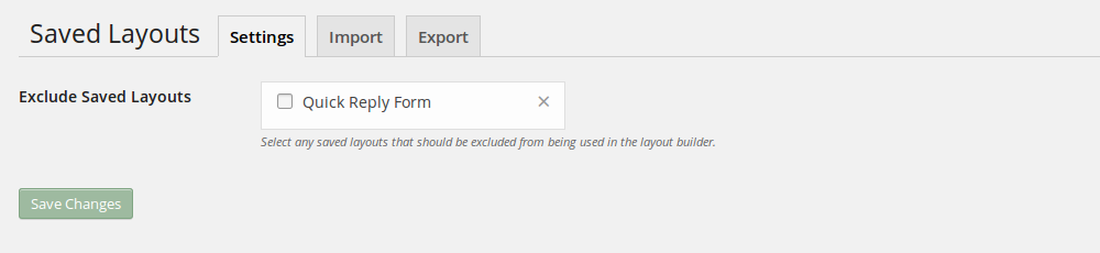 Saving a layout, is a matter of clicking the download icon next to the folder icon. Give it a name, done. As we have discussed earlier, you can export Saved Layouts and transfer these to other WordPress installs.